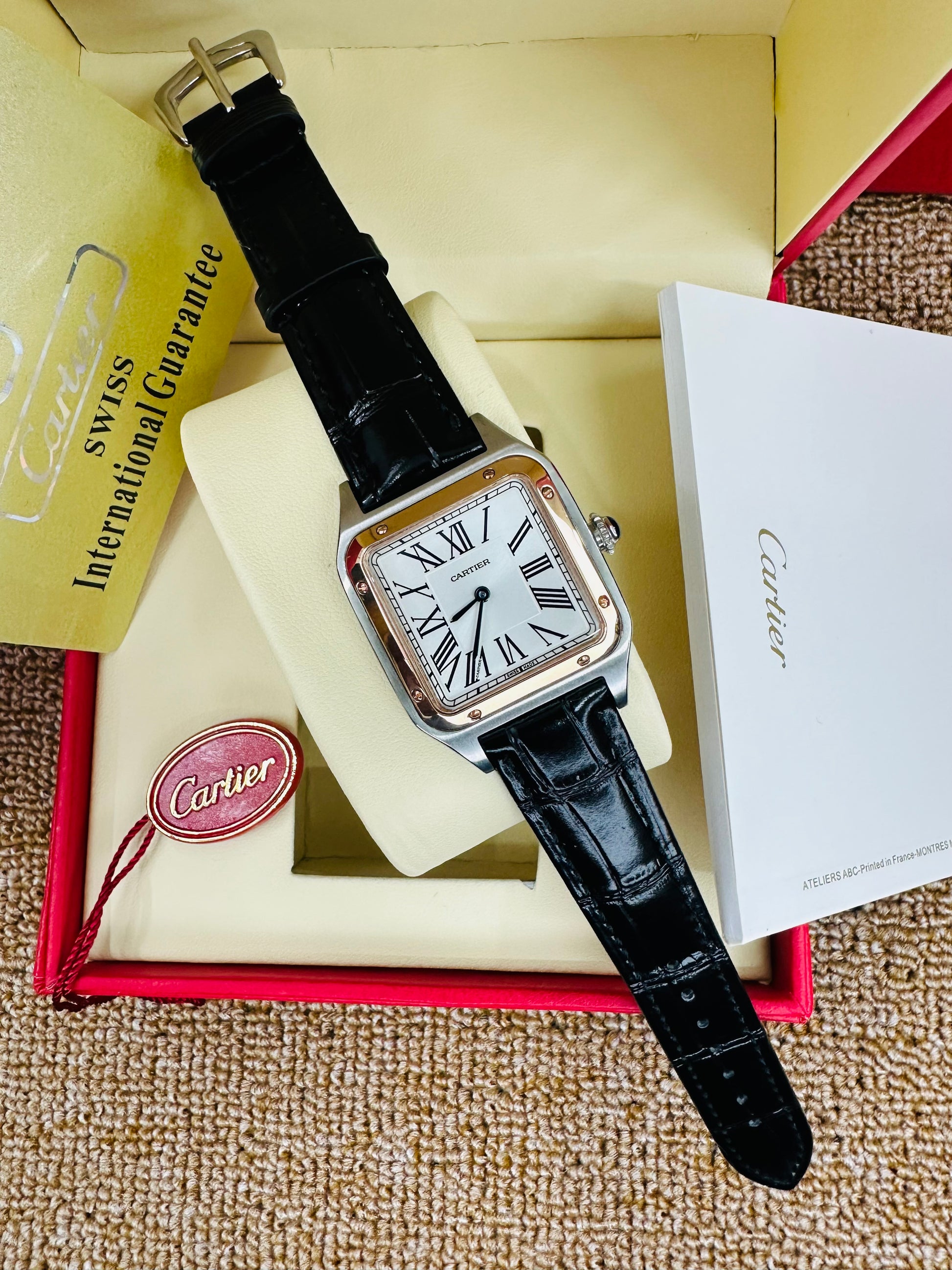 Cartier Santos Quartz Rose Gold Case White Dial Genuine Leather Strap Lady’s Watch