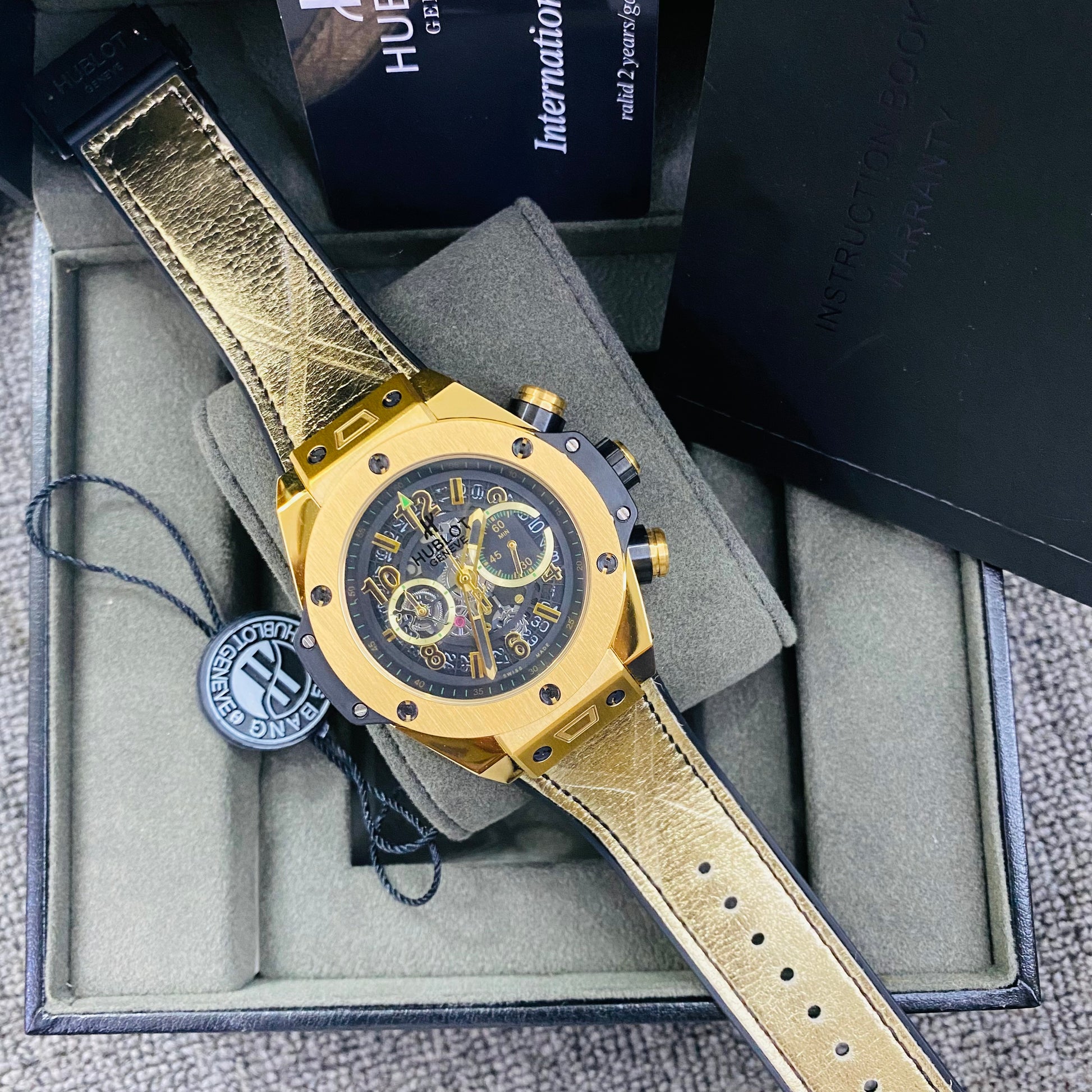 Hublot BigBang Geneve Rose Gold Stainless Steel quartz movements Golden Silicone Strap Europe Standard Watch For Men's