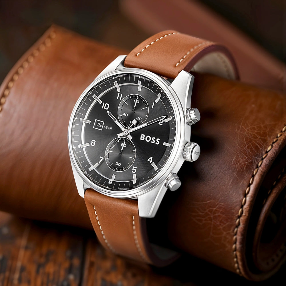 Hugo Boss Sky-Traveller HB1514161 Chronograph Quartz Genuine Leather Strap Men’s Watch