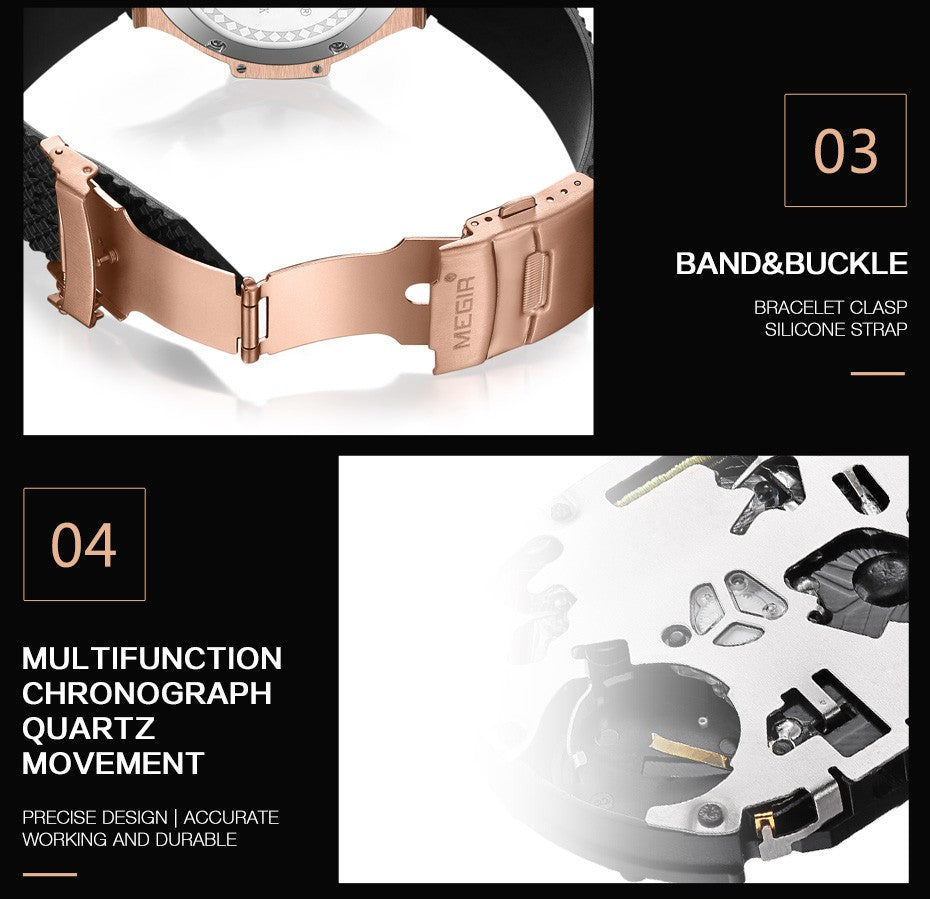 Megir 2050G Dual Tone Chronograph Silicon Strap Men’s watch