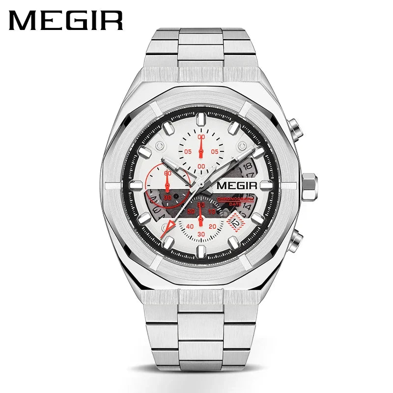 Megir 2225 Quartz Chronograph White Dial Stainless Steel Chain Men’s watch