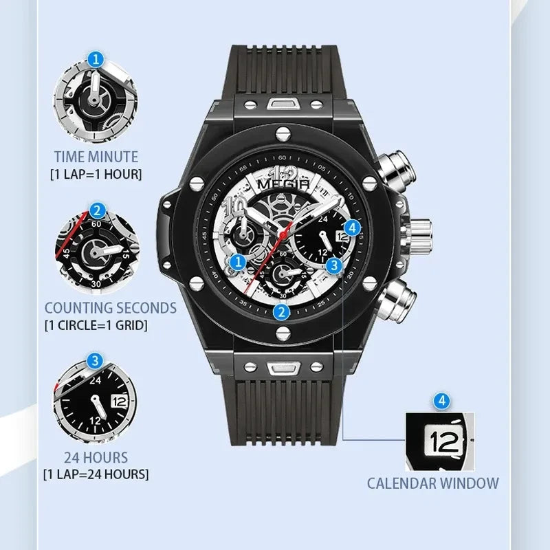 Megir M-20013 Chronograph Quartz White Silicone Strap Men’s watch