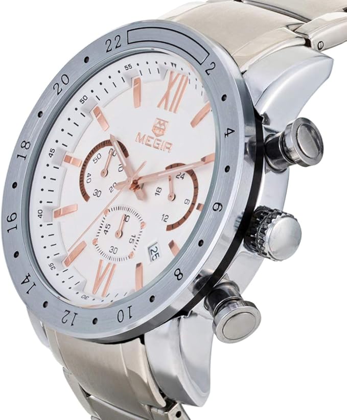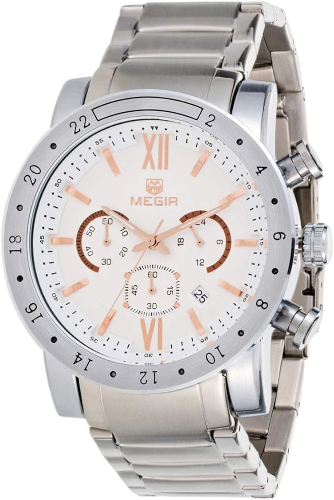 Megir M-3008 Chronograph Quartz Silver Stainless Steel Chain Men’s watch