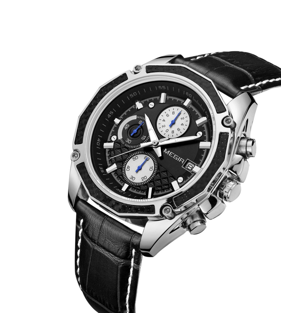 Megir M2015 Chronograph Black Genuine Leather Strap Men’s watch