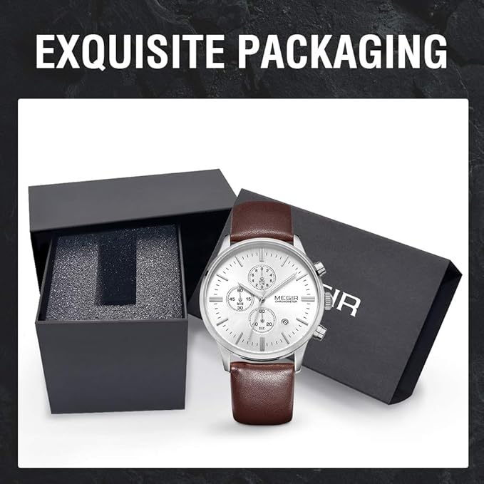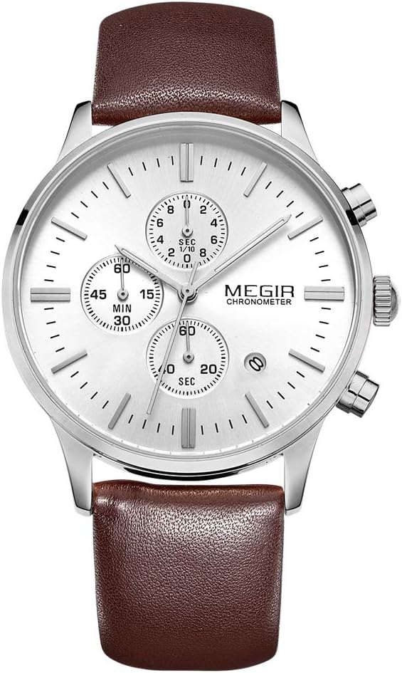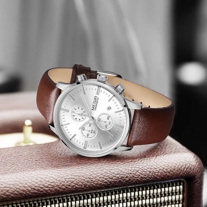 Megir ML2011GBN-7N0 Quartz Chronograph Chocolate Brown Genuine Leather Strap Men’s watch