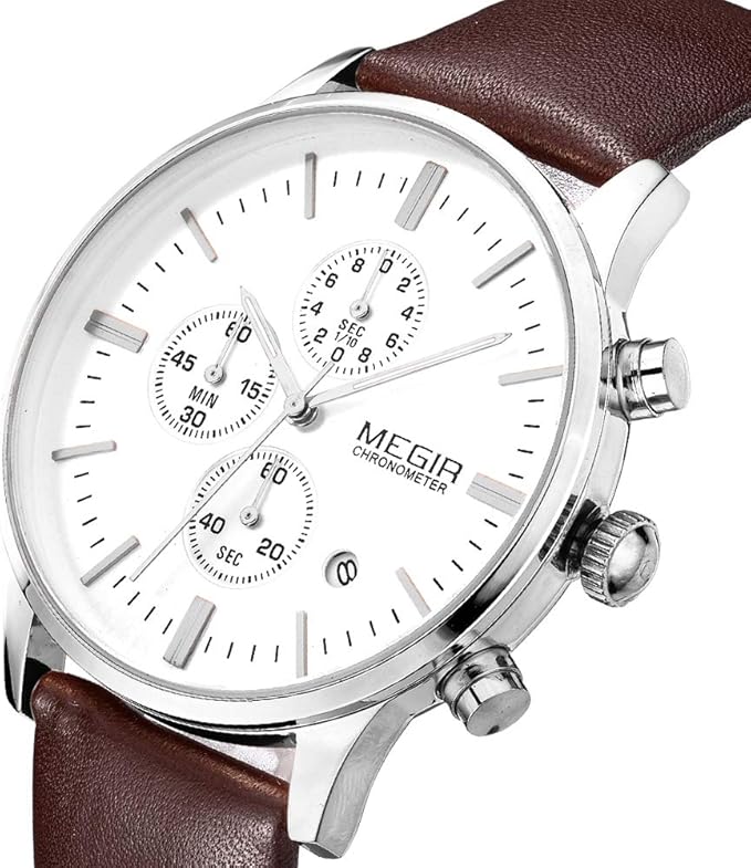 Megir ML2011GBN-7N0 Quartz Chronograph Chocolate Genuine Leather Strap Men’s watch