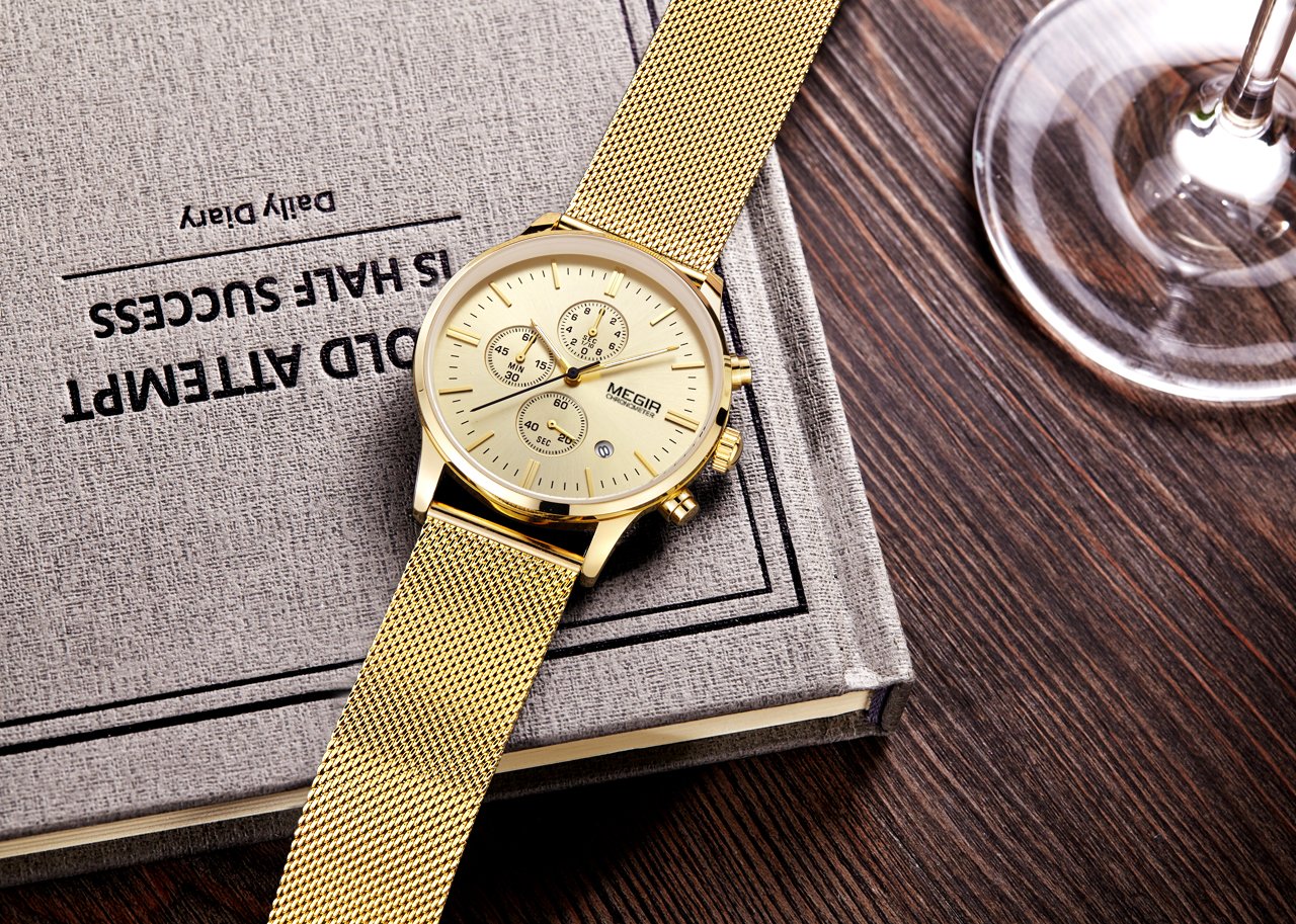 Megir ML2011GBN-7N0 Quartz Chronograph Rosegold Stainless Steel Strap Men’s watch