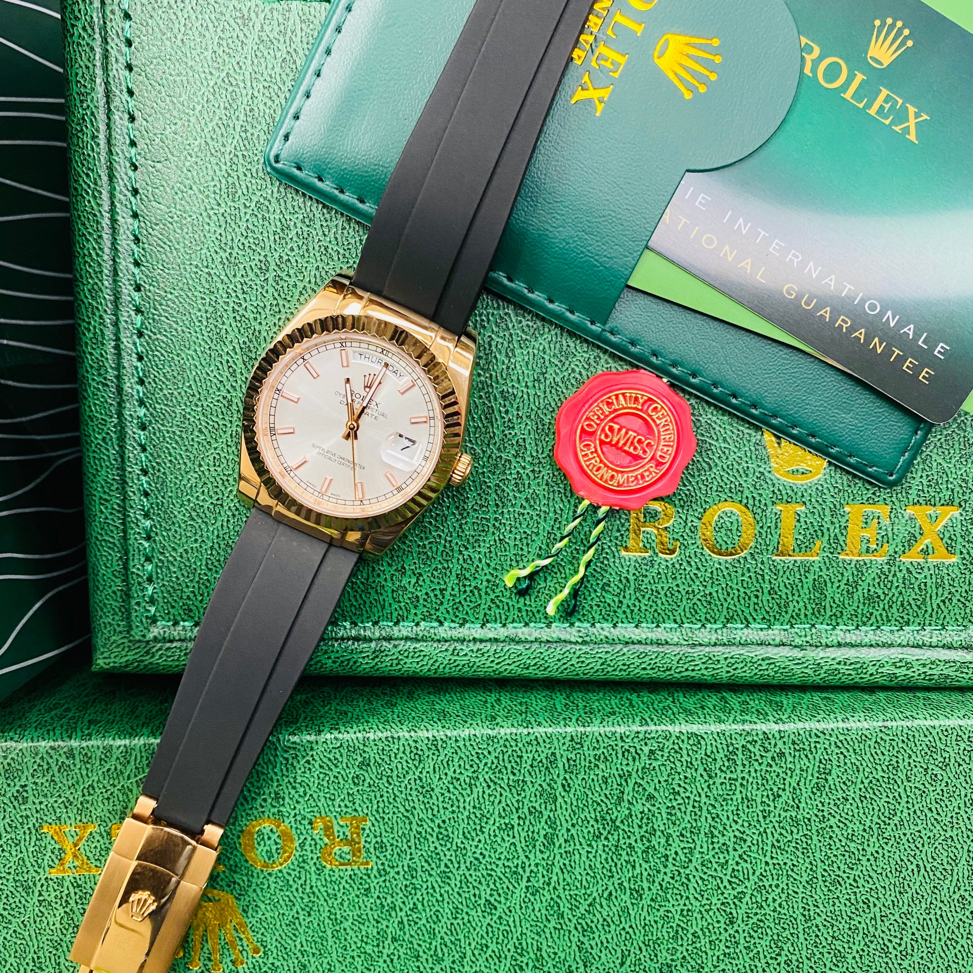 Rolex Day-Date Oyster Perpetual Automatic White Dial Silicone Strap Lady’s Watch