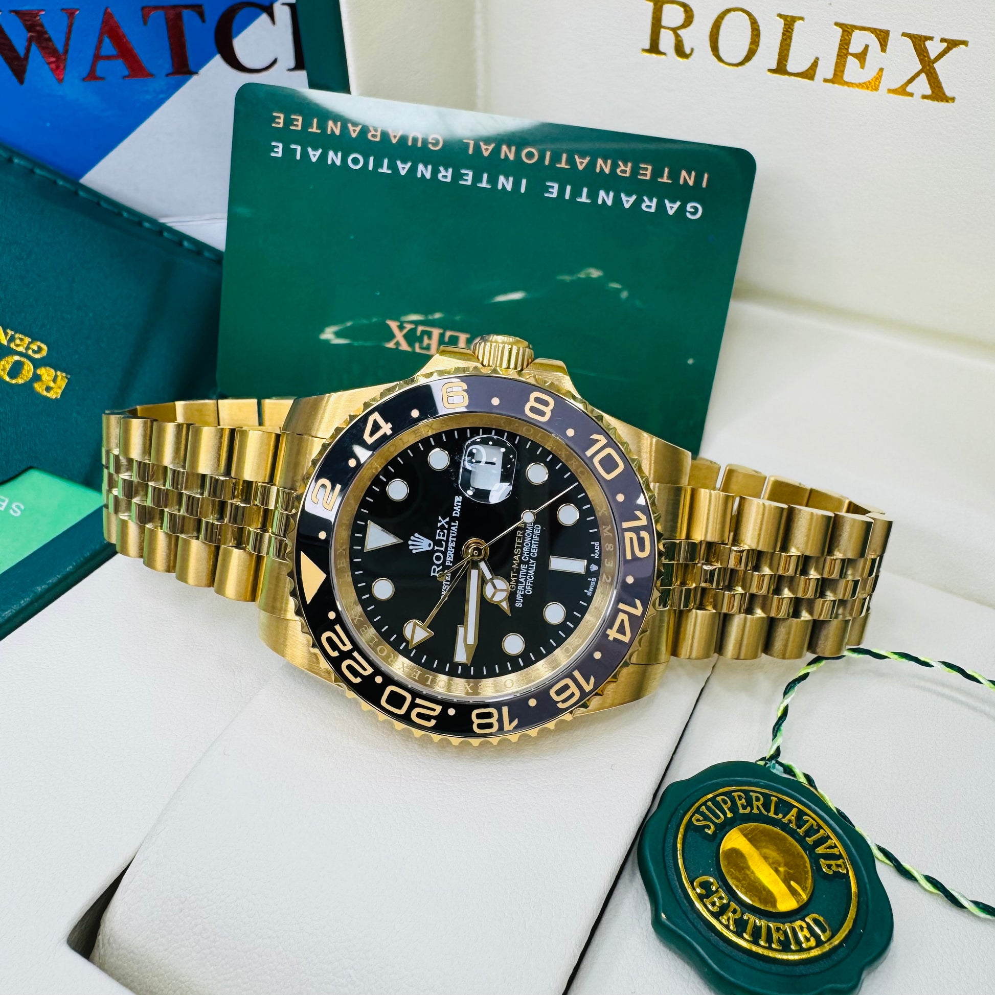 Rolex GMT Master II Automatic Full Golden with Black Dial Stainless Steel Jubilee Bracelet Men’s Watch