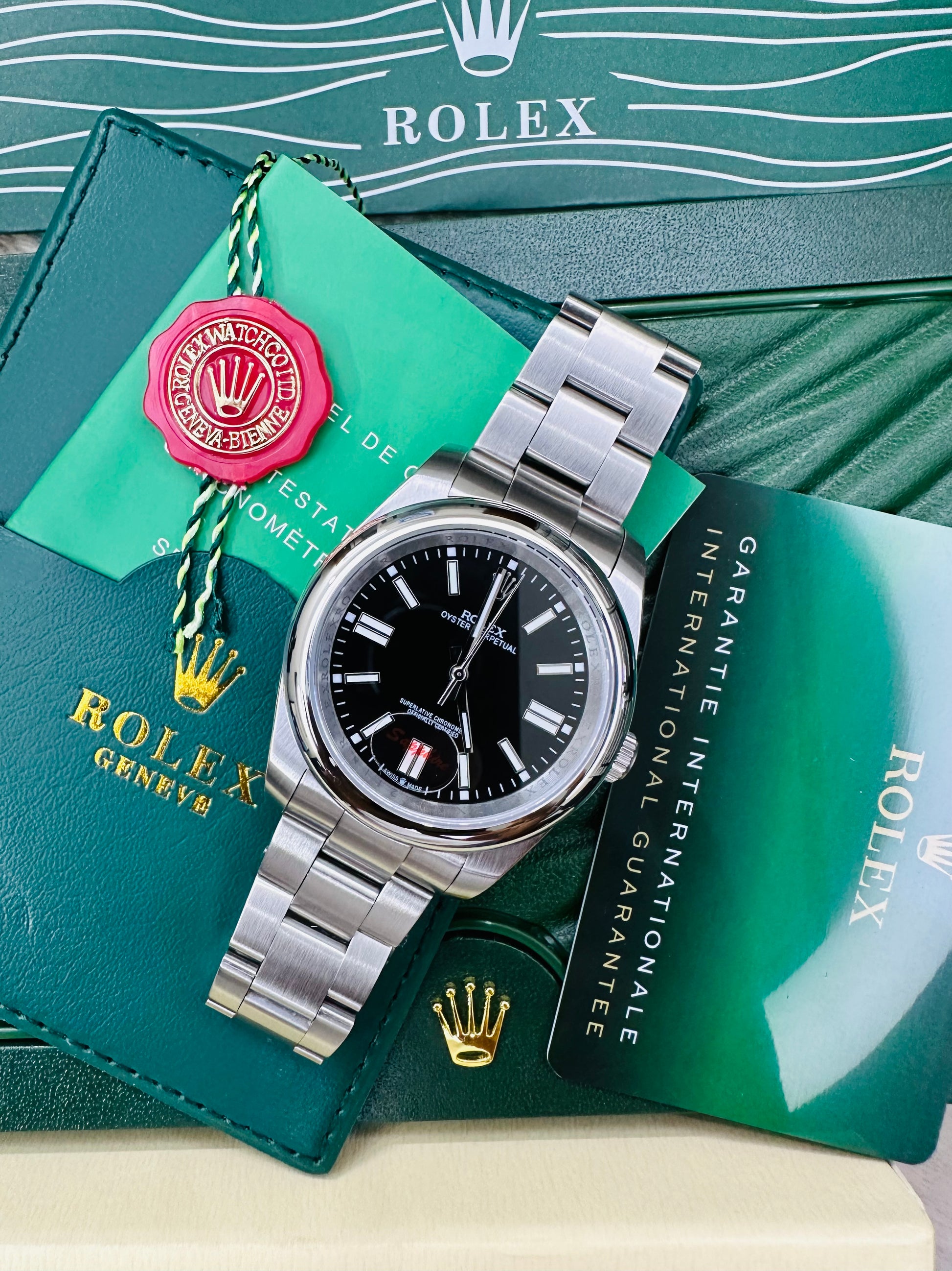 Rolex Oyster Perpetual Automatic Full Silver Color With Black Dial Stainless Steel Chain Men’s Watch
