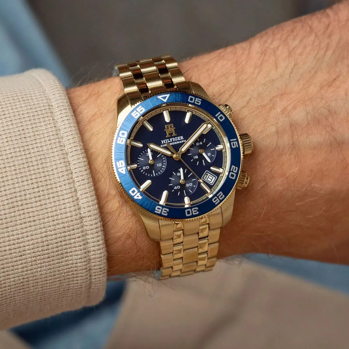 Tommy Hilfiger TH85 1792158 Chronograph Quartz Gold-Tone White Dial Stainless Steel Chain Men’s Watch